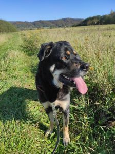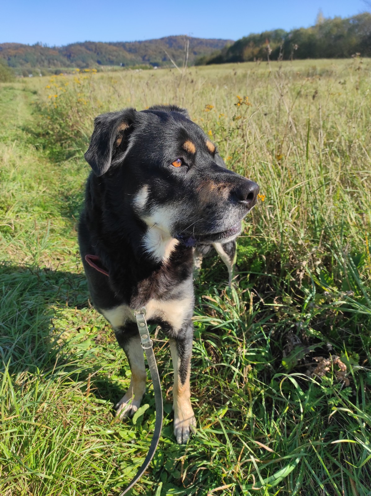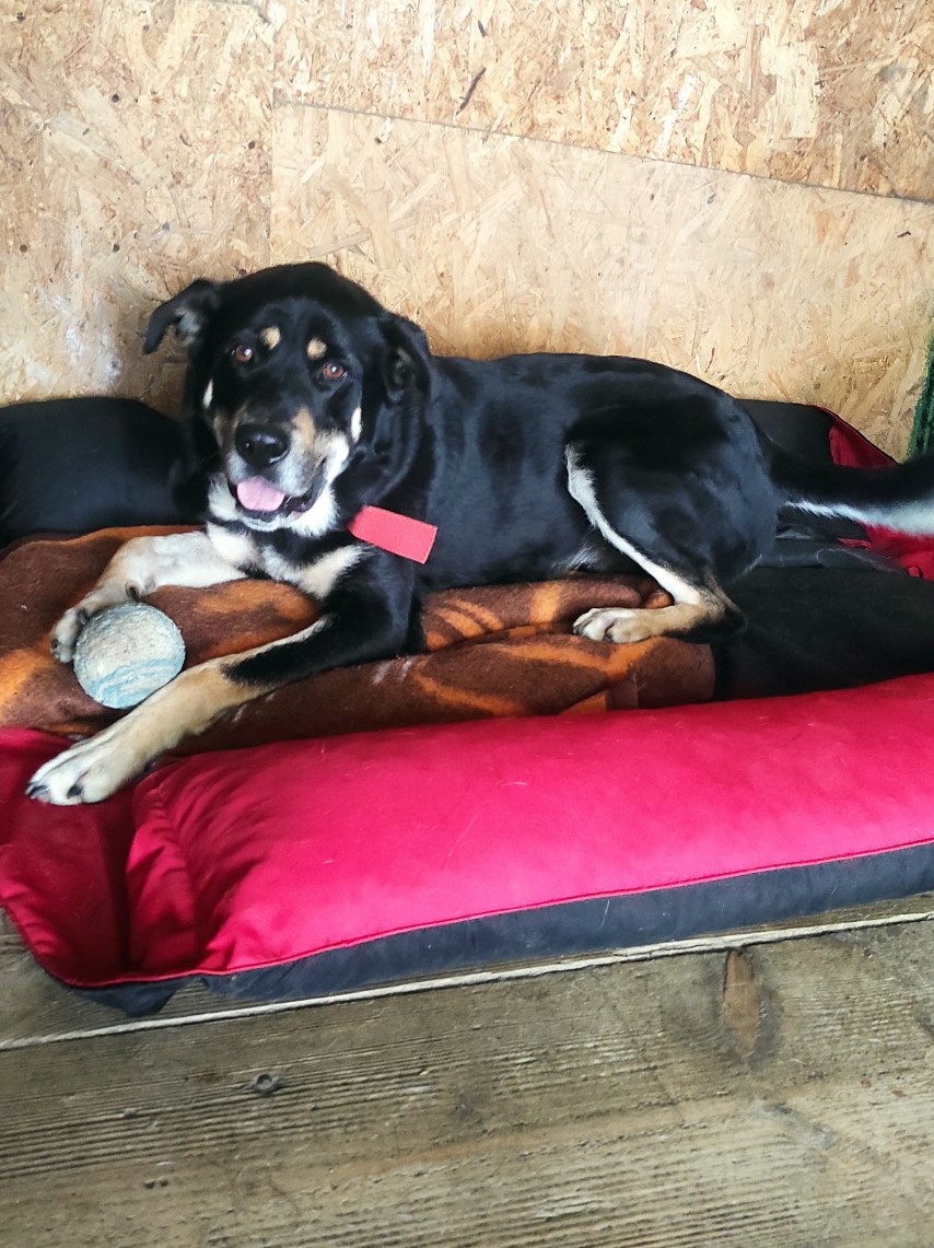 Wcześniejsze losy: Znaleziono go błąkającego się w okolicach Łańcuta i umieszczono w gminnej przechowalni (rodzaj kojca interwencyjnego). Już tam Bruno miał duże problemy jelitowe (cierpiał z powodu biegunek). Został przywieziony do nas w stanie mocno odwodnionym i wychudzonym. Tutaj podjęliśmy się jego leczenia – 1,5 miesiąca przyjmował leki stabilizujące pracę jelit, a przyczyną jego problemów okazała się alergia pokarmowa na mięso kurczaka. Po eliminacji z diety tego składnika wszystko wróciło do normy, choć dość długo trwało, aby Bruno przybrał na wadze.