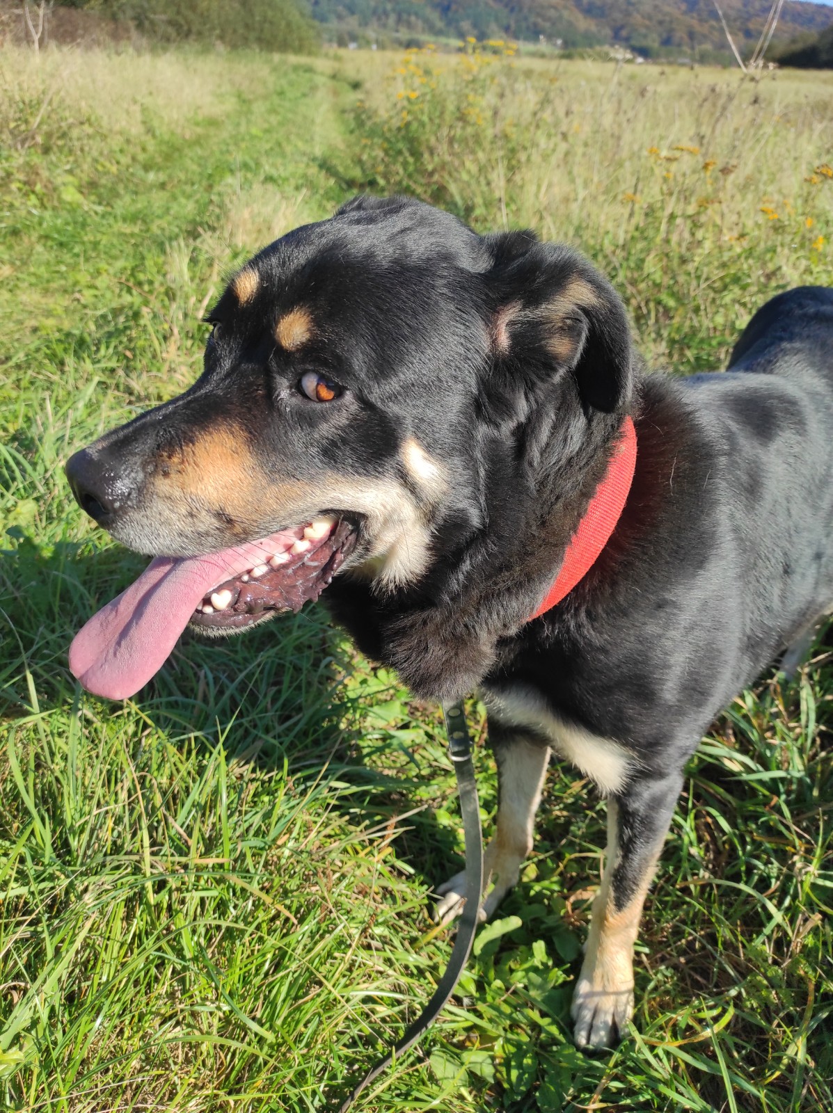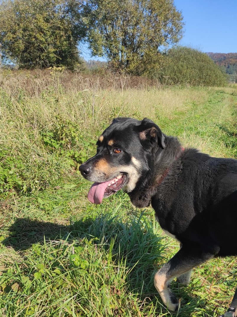 Wygląd/rasa: Duży, mieszaniec, czarny podpalany.