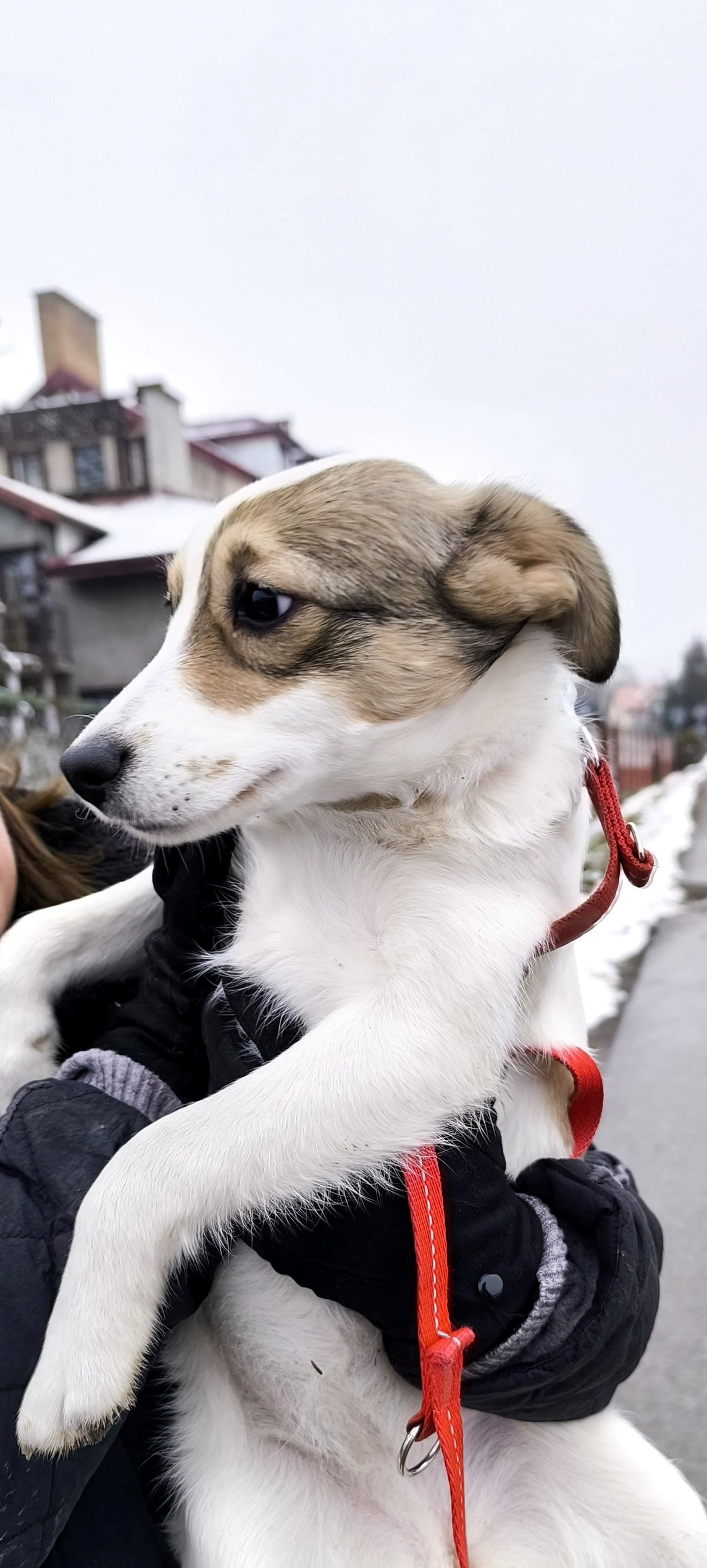 Wygląd/rasa: Nieduża, wielorasowa, biała z domieszką beżu.